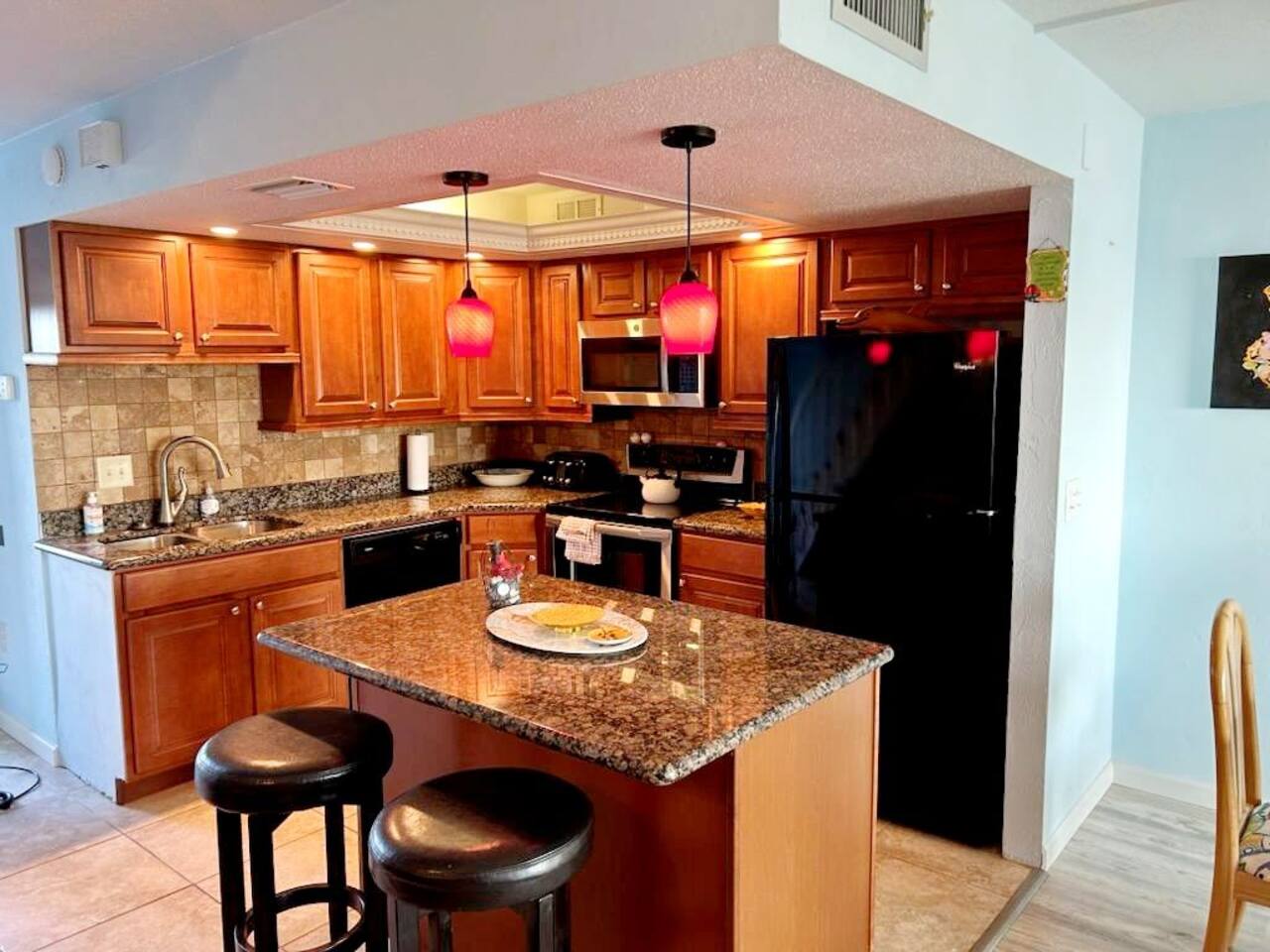 Plenty of privacy with this 2 bedroom townhome. Bedrooms are split and located on 2nd floor, includes washer/dryer in the unit, large gourmet kitchen and 1st floor bathroom. Beautiful views from the master bedroom with a private balcony. 3 TVs available, 1 in each bedroom and 1 in living room.