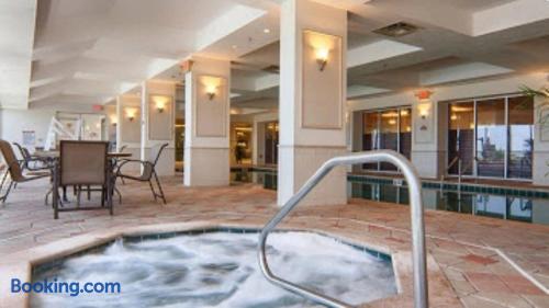 We have opened 1 heated outdoor pool and the indoor pool and 1 hot tub but working on heaters. Also available are fitness center and sauna. We have beach access and private parking in the lot on other side of white fence. Beach access on the north side of the building at the new beach ramp with spray off fountains and benches