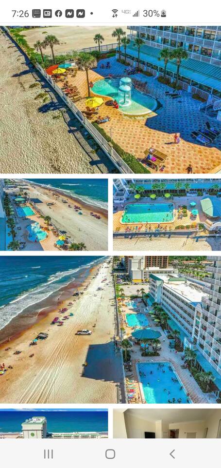 OCEAN VEIW CONDO ON 10TH FLOOR! Super cute Daytona Beach studio condo w/2 queen beds, & a full kitchenette including refrigerator, sink, cooktop, & microwave. Resort is direct oceanfront w/beach access located across from a large shopping plaza which has grocery store, Walgreens, lots of restaurants, retail shops and an ice cream parlor! We have everything including sun just bring your sunscreen & toothbrush. **Update** OUR POOLS ARE CLOSED! WE DO HAVE BEACH ACCESS AND PLENTY OF SUNSHINE