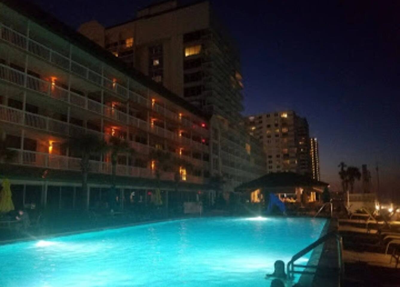 We have 1 heated outdoor pool available, indoor pool and 1 hot tub. Guests have beach access from the north side ramp. We also have our own private parking lot next to the resort, as our parking garage is closed for repairs. We also have coin laundry available on site.