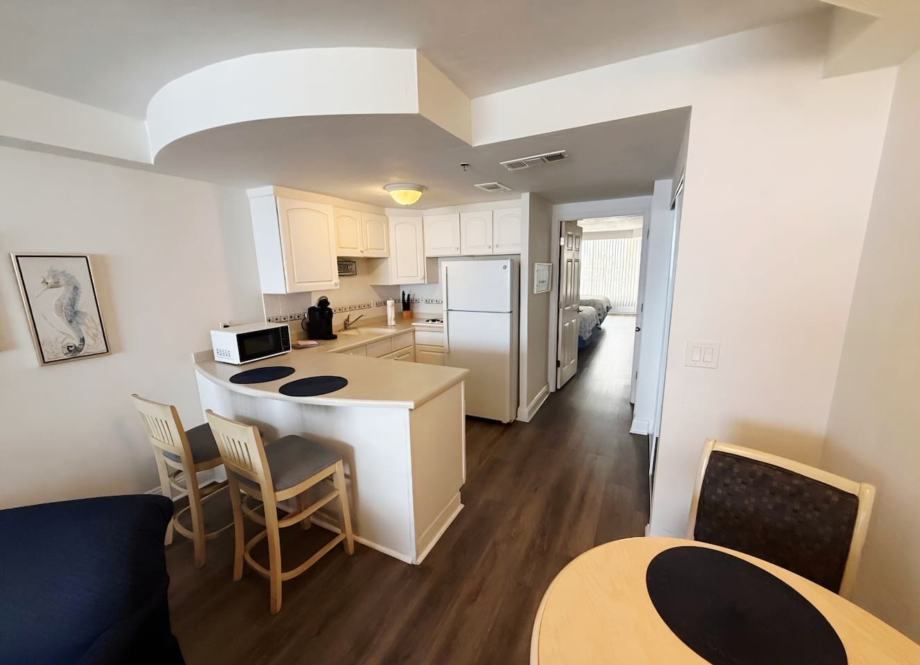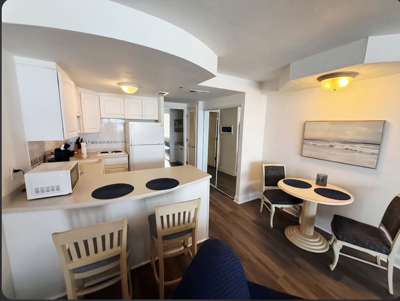 Our Resort is located across from a large shopping plaza with a grocery store, dining options, retail shops, a Walgreens and many other options. Our resort is directly on the beach with beach access. Our seawall has been damaged from prior hurricanes and we are currently working on fixing the pool deck. We do have a heated outdoor pool, heated indoor pool and hot tubs, fitness center, sauna and parking.