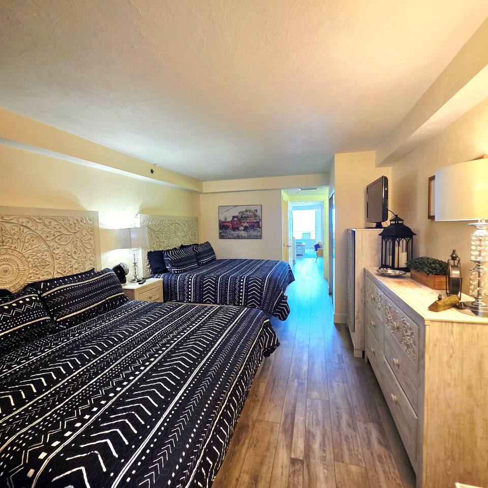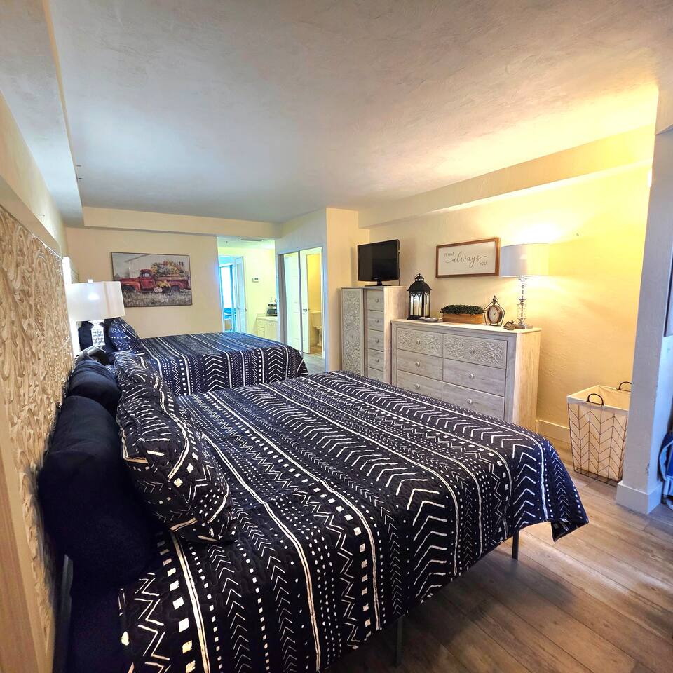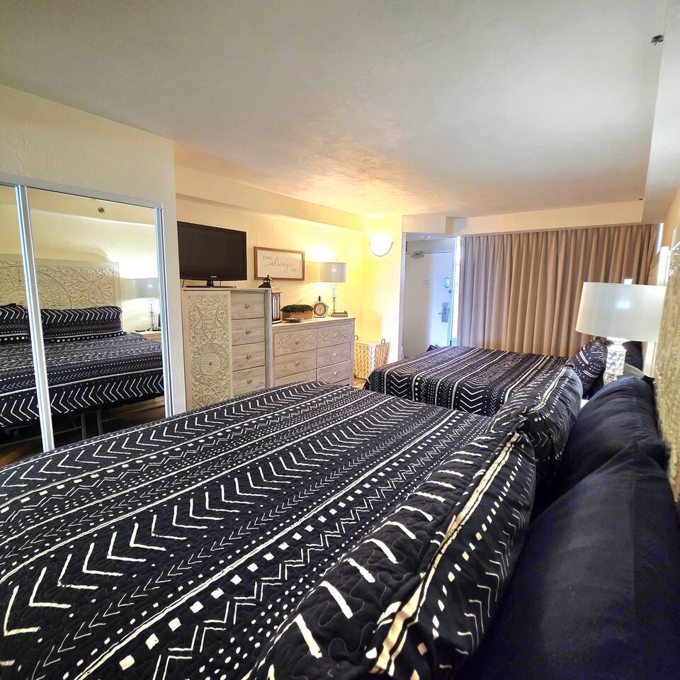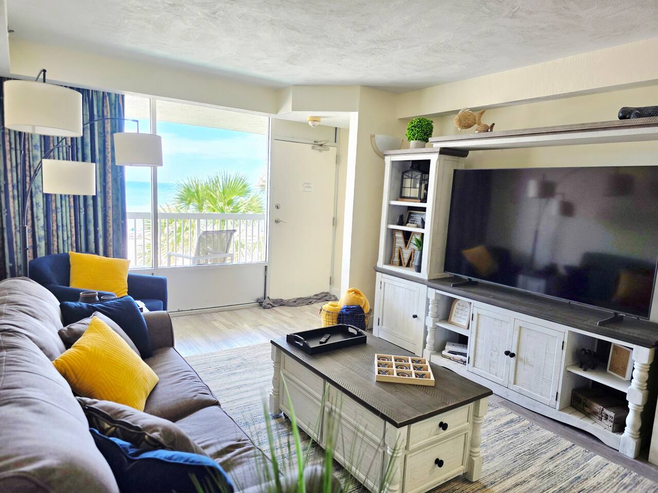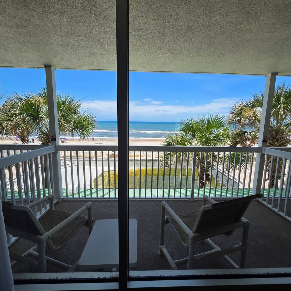 Wake up to stunning ocean views in this large 1-bedroom direct oceanfront condo! Featuring two king beds in private bedroom w/tv, a queen sleeper sofa in living room w/ large smart tv, & a full kitchen, this comfortable getaway has space for the whole family or group. Enjoy your morning coffee and the sunrise on the private balcony overlooking the Atlantic. Perfect for a beach vacation, this unit offers comfort, convenience, and unbeatable views right on the shore! Room for the whole family!