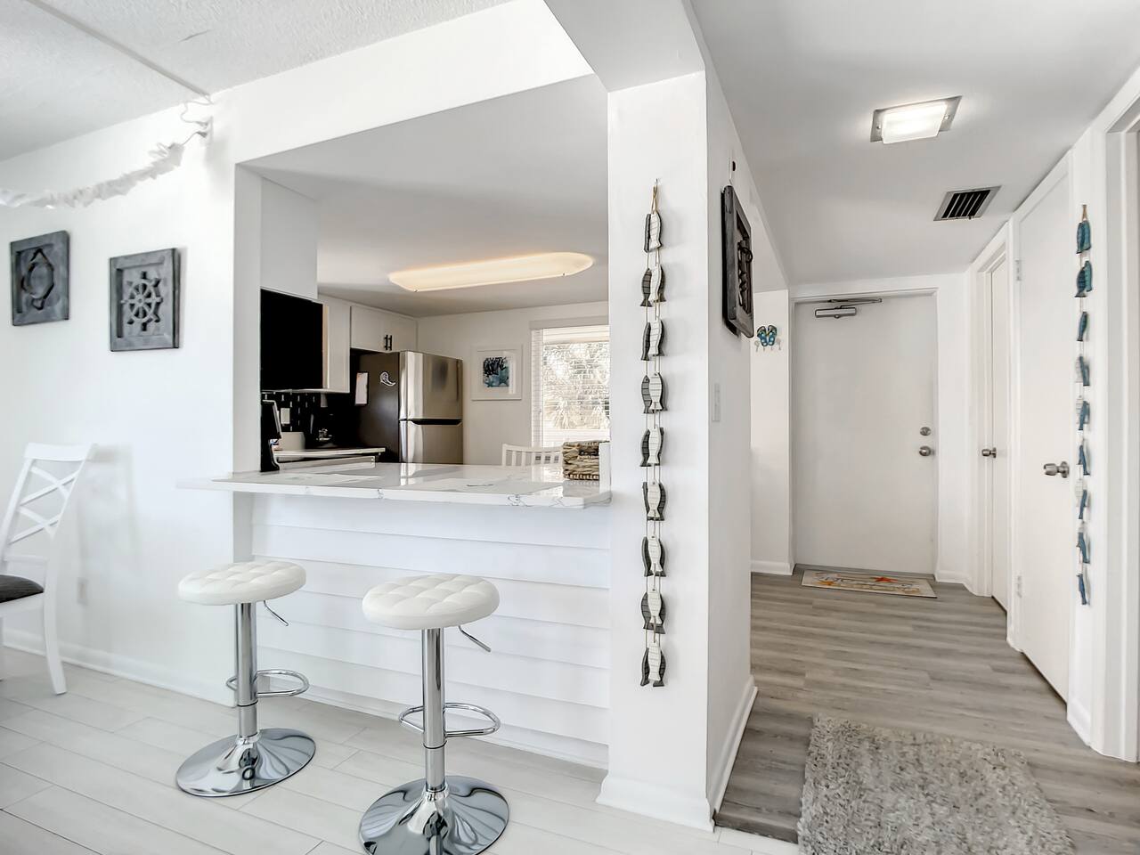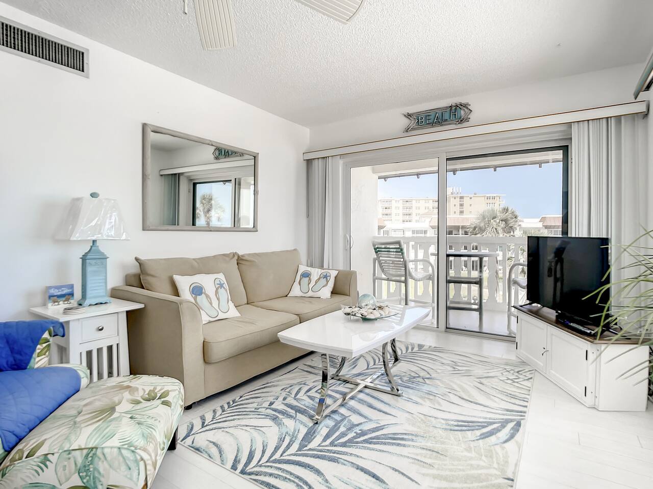 . 60 minutes from Orlando International Airport and the Disney attractions and 20 minutes from Daytona Beach airport. Condo is walking distance from grocery stores and restaurant's and is just three buildings down from the popular Chase's on the Beach which features indoor and outdoor dining and a deck . Also, nearby is the famed Flager Avenue with shopping and nightlife. New Smyrna Beach was voted 'Best Beach in Florida' by the readers of FLORIDA MONTHLY MAGAZINE and is the preferred beach area of the local central Florida residents. Enjoy art galleries, live theater, shopping, and dining. Historic Flagler Avenue hosts quaint shops, pubs, and restaurants. The condo is located where the driving beach ends and the non-driving beach begins, so you get the best of both worlds.