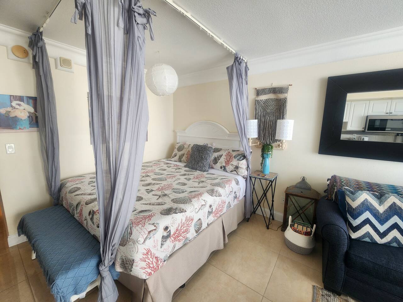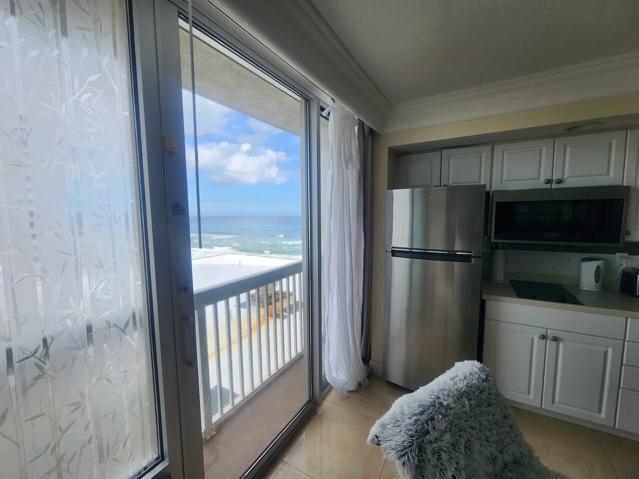 Oceanview studio in an oceanfront resort w/beach access, private parking. Resort located across from shopping plaza w/large grocery store, Walgreens, retail shops, dining options including an ice cream parlor. Studio is updated w/California king bed, twin sleeper sofa, full kitchen w/2 burner stove & all the necessities needed to cook a meal, full bath, Juliette balcony w/ an ocean view as well as a sunset view. Main St and the Daytona Pier is 2 miles south, 8 miles to the Daytona Int'l Airport