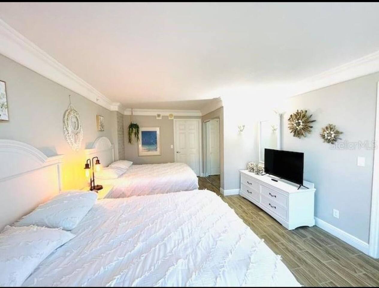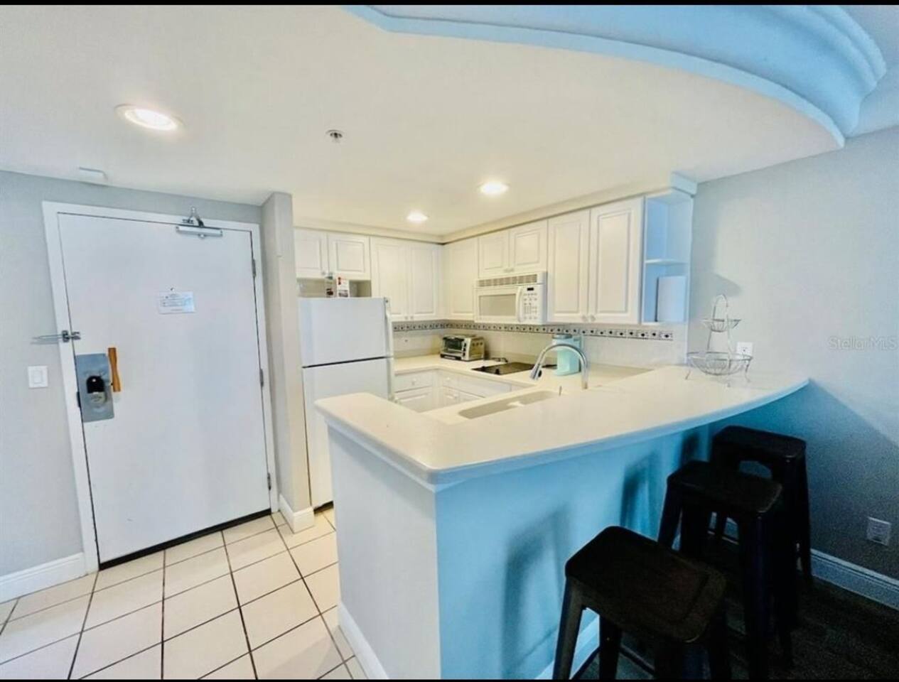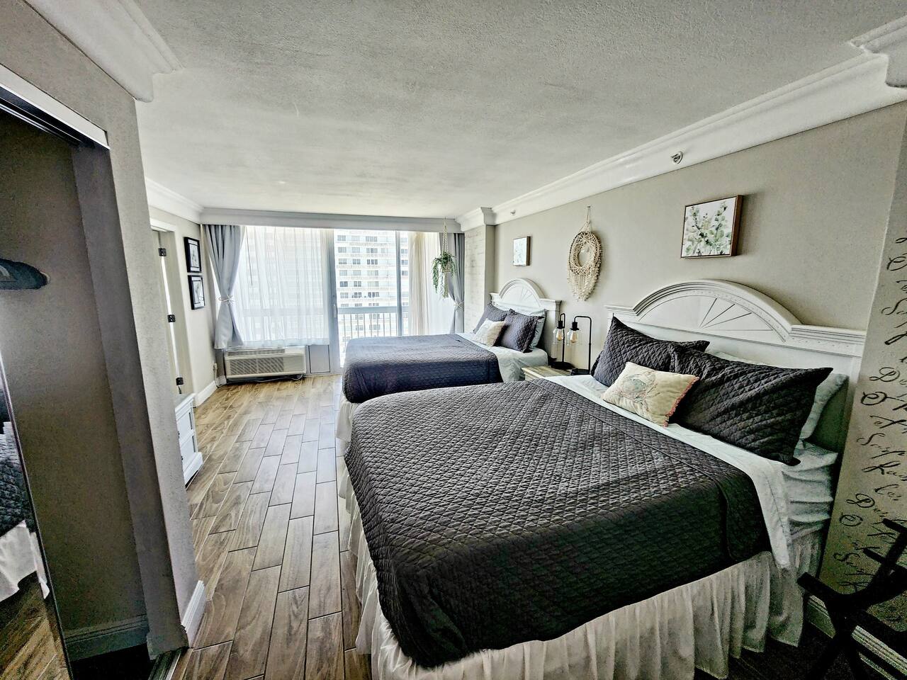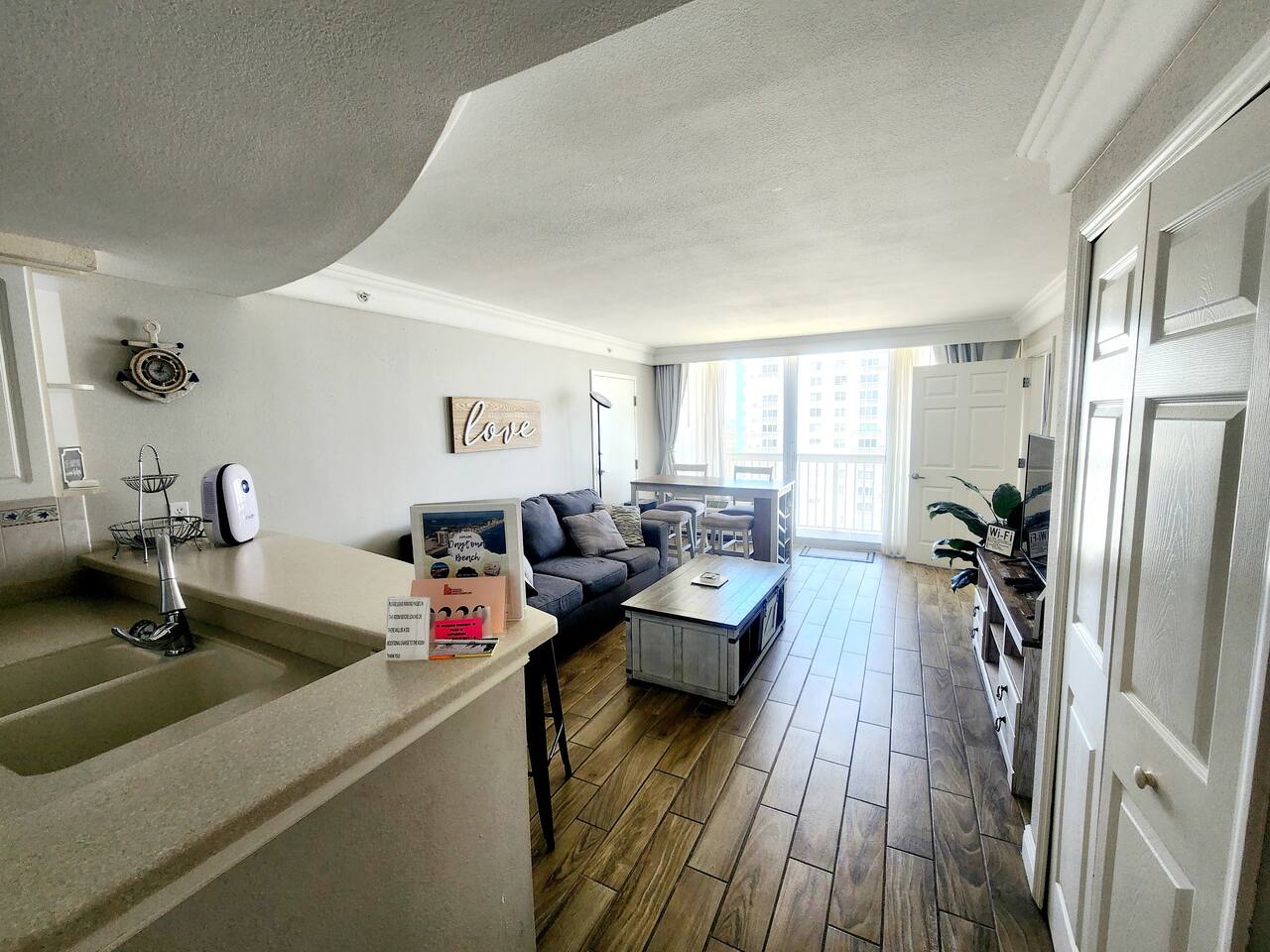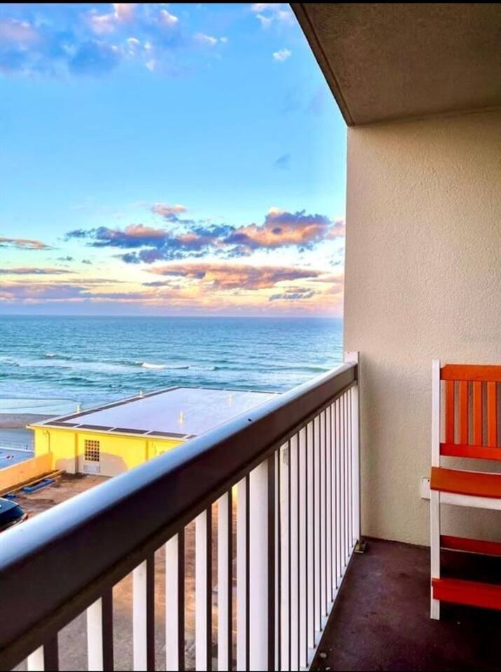 OPULENT and SPACIOUS fully REHABBED BEACH FRONT property that SLEEPS 6 is ready for it’s new owners. This is a CRISP AND CLEAN GETAWAY ON the BEACH in one of DAYTONA’S PREMIER RESORT COMMUNITIES. This GEM has EVERYTHING including new and private super COMFORTABLE QUEEN BEDS in the master, a nightstand with a USB CHARGING PORT. Guests can sleep in the ROOMY main suite on the pull out couch and have their privacy as well. All furniture is a modern Farmhouse that is warm and inviting. Kitchen BRIGHT and EFFICIENT with a NEW MODERN oven, NEW coffee maker, ice cold refrigerator and electric stove top for easy clean up. There are TWO balconies to GAZE upon the SUNSETS. This WORLD CLASS resort is ON THE BEACH and also has pools, arcades, restaurants and entertainment within the complex. Unit has one parking space but an additional may be had at no additional cost. ALL AMENITIES ARE CURRENTLY CLOSED DUE TO HURRICANE DAMAGE. WE DO HAVE BEACH ACCESS NEXT TO THE RESORT