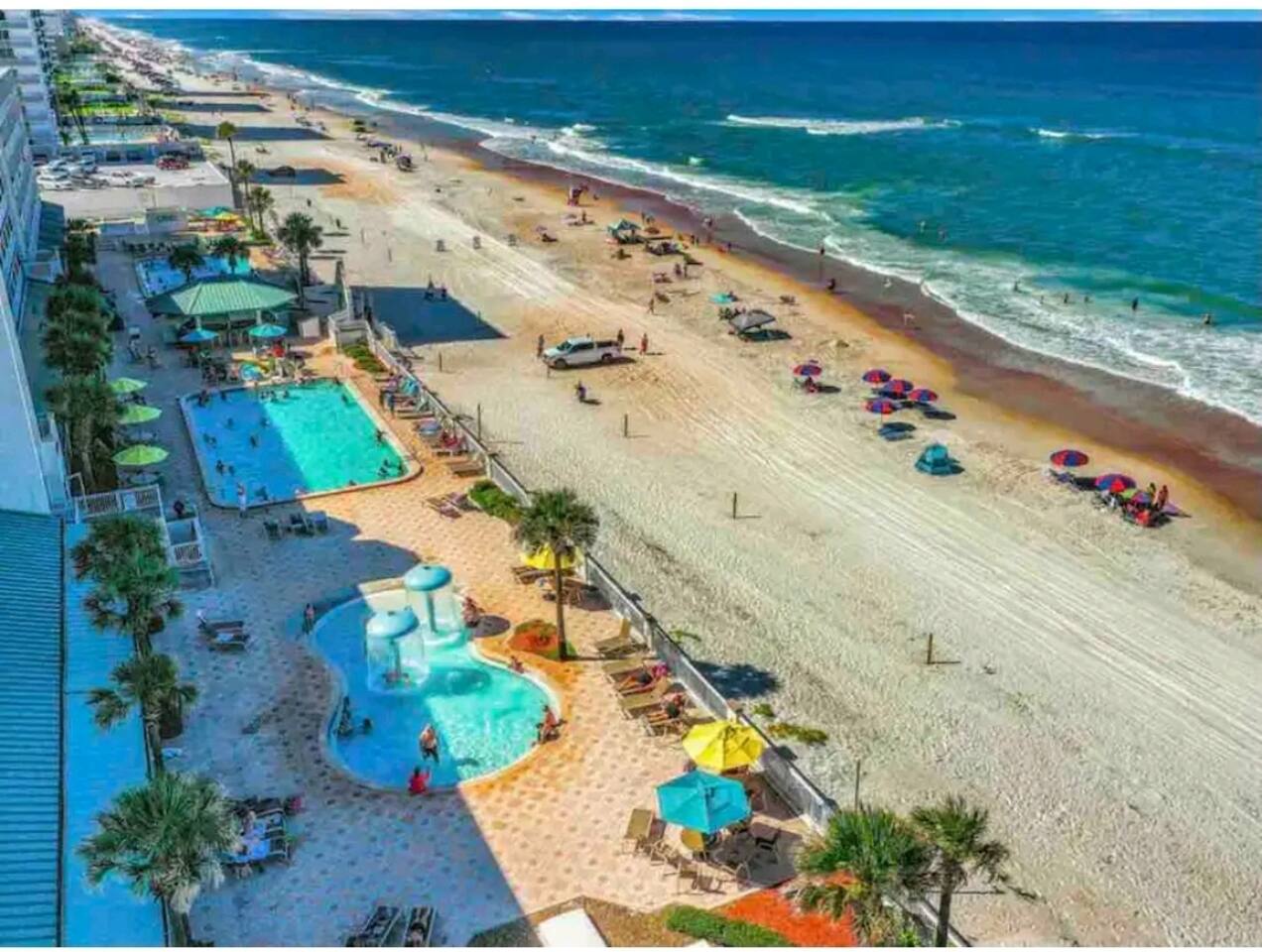 We are centrally located with a large shopping plaza directly across the street from our resort with a large grocery store, Walgreens, restaurants, and retail shopping. Only 2 miles from The Boardwalk and Daytona Beach Pier and water park. 8 miles from the Daytona International Airport, and an hour from Sanford Airport
