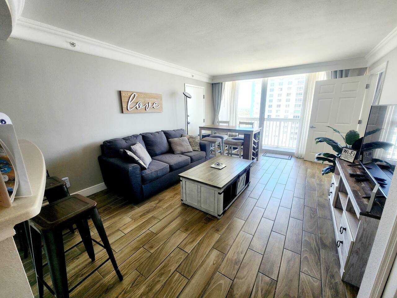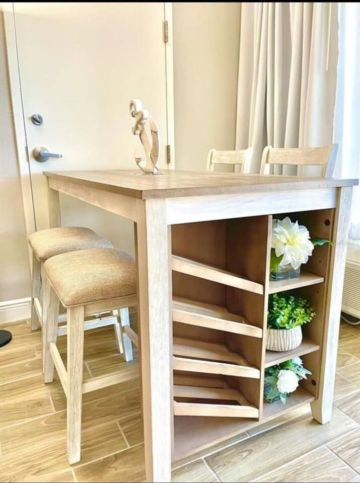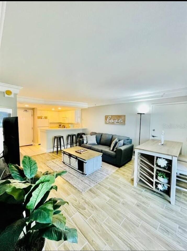 OPULENT & SPACIOUS BEACH FRONT property that SLEEPS 6. New & private super COMFORTABLE QUEEN BEDS in master, a nightstand w/a USB CHARGING PORT. ROOMY main suite w/pull out queen couch. All furniture is modern Farmhouse that is warm & inviting. Kitchen is BRIGHT & EFFICIENT w/ NEW MODERN oven, NEW coffee maker, ice cold refrigerator & electric stove top. TWO balconies to watch SUNSETS. WORLD CLASS resort ON THE BEACH has beach access and located across from a large shopping plaza.