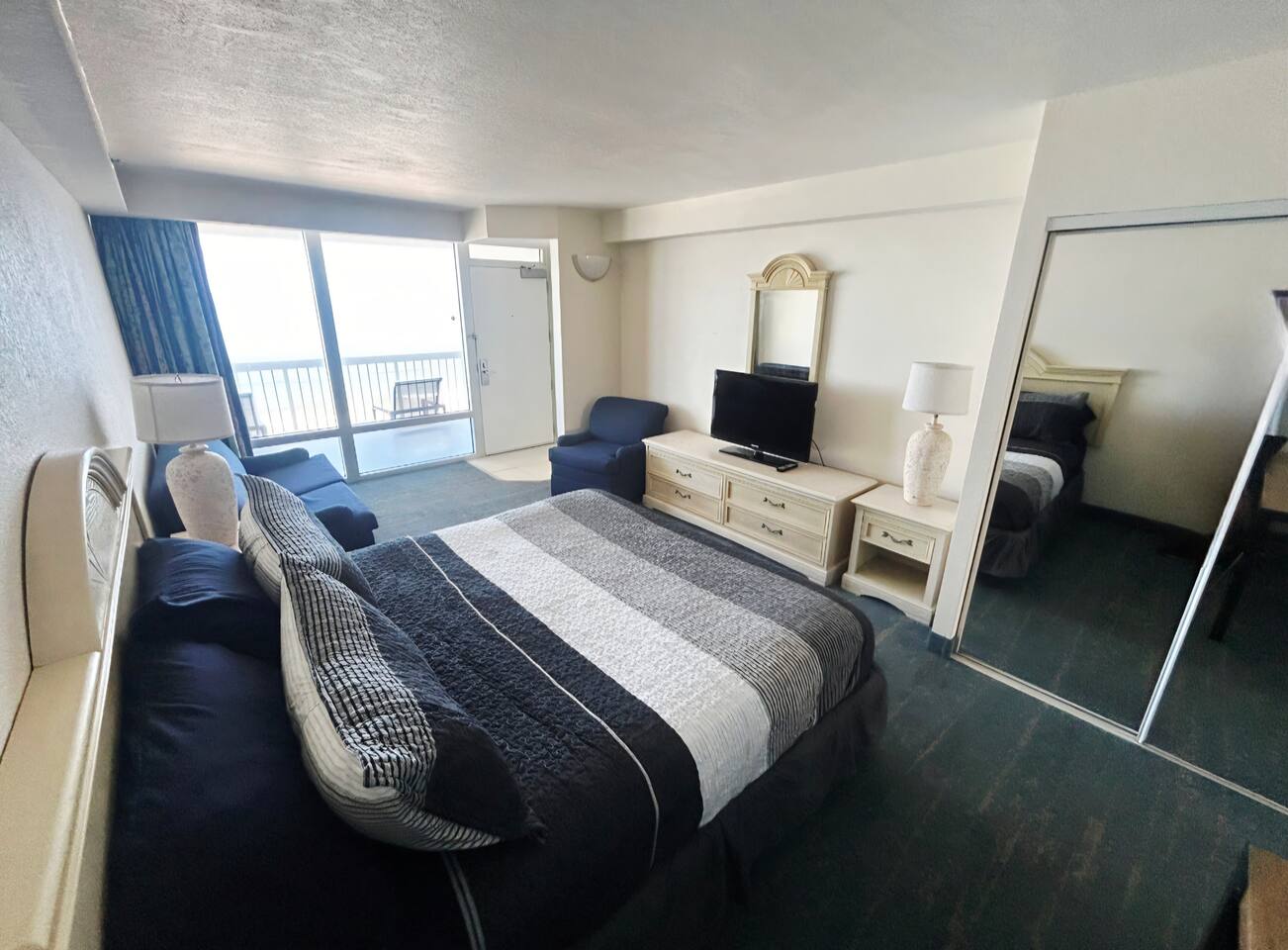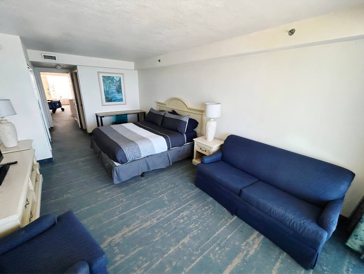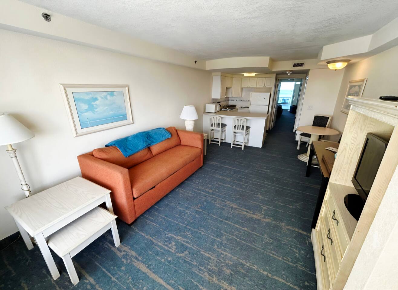 Perfect for a beach vacation, this unit offers comfort, convenience, and unbeatable views right on the shore! Wake up to stunning ocean views in this large 1-bedroom direct oceanfront condo! Featuring king bed & queen sleeper sofa in bedroom, queen sleeper in living room, a full kitchen, this comfortable getaway has space for the whole family or group. Enjoy your morning coffee on the private balcony overlooking the Atlantic, & take advantage of the heated indoor & outdoor pool, hot tubs & more