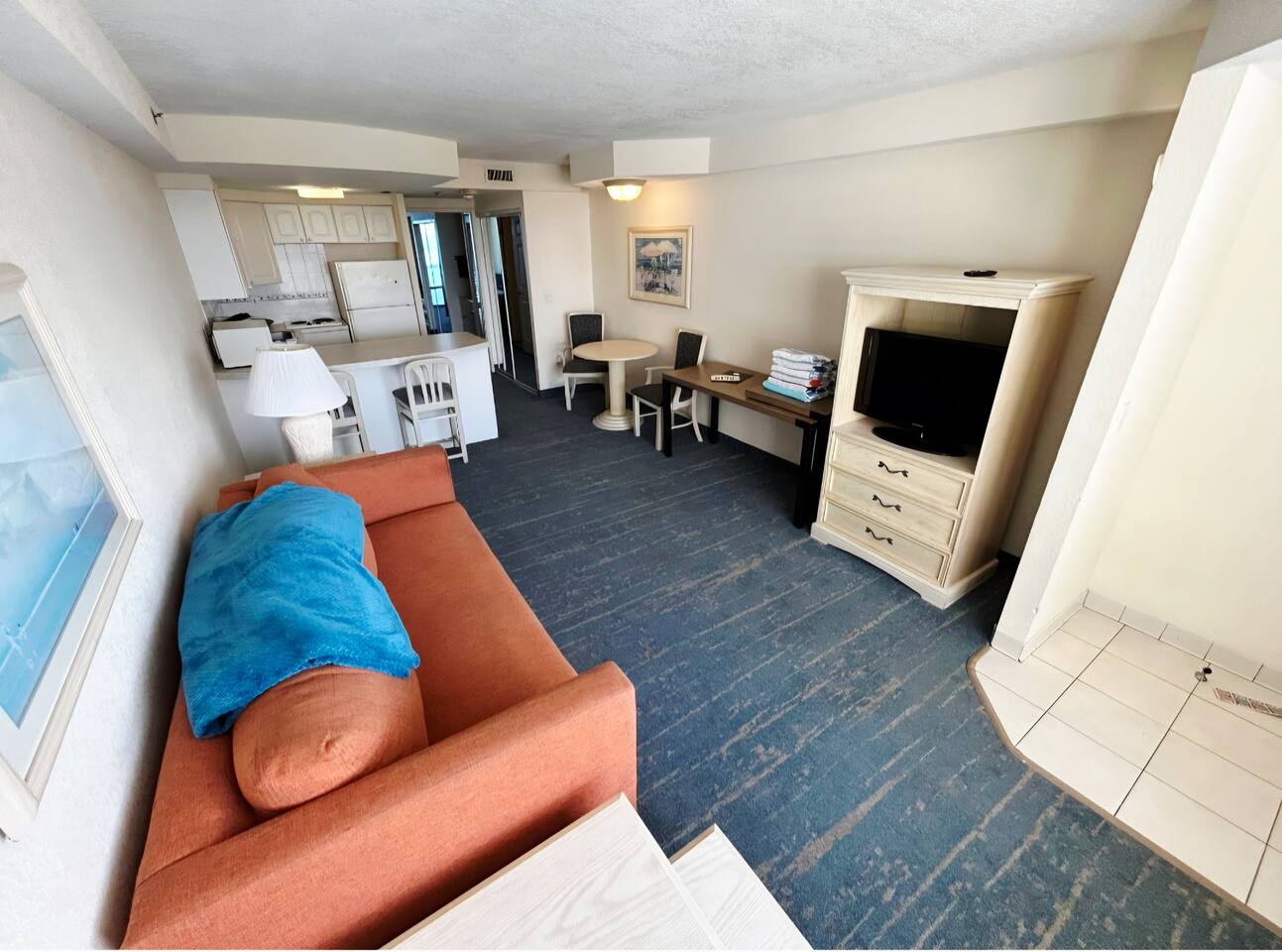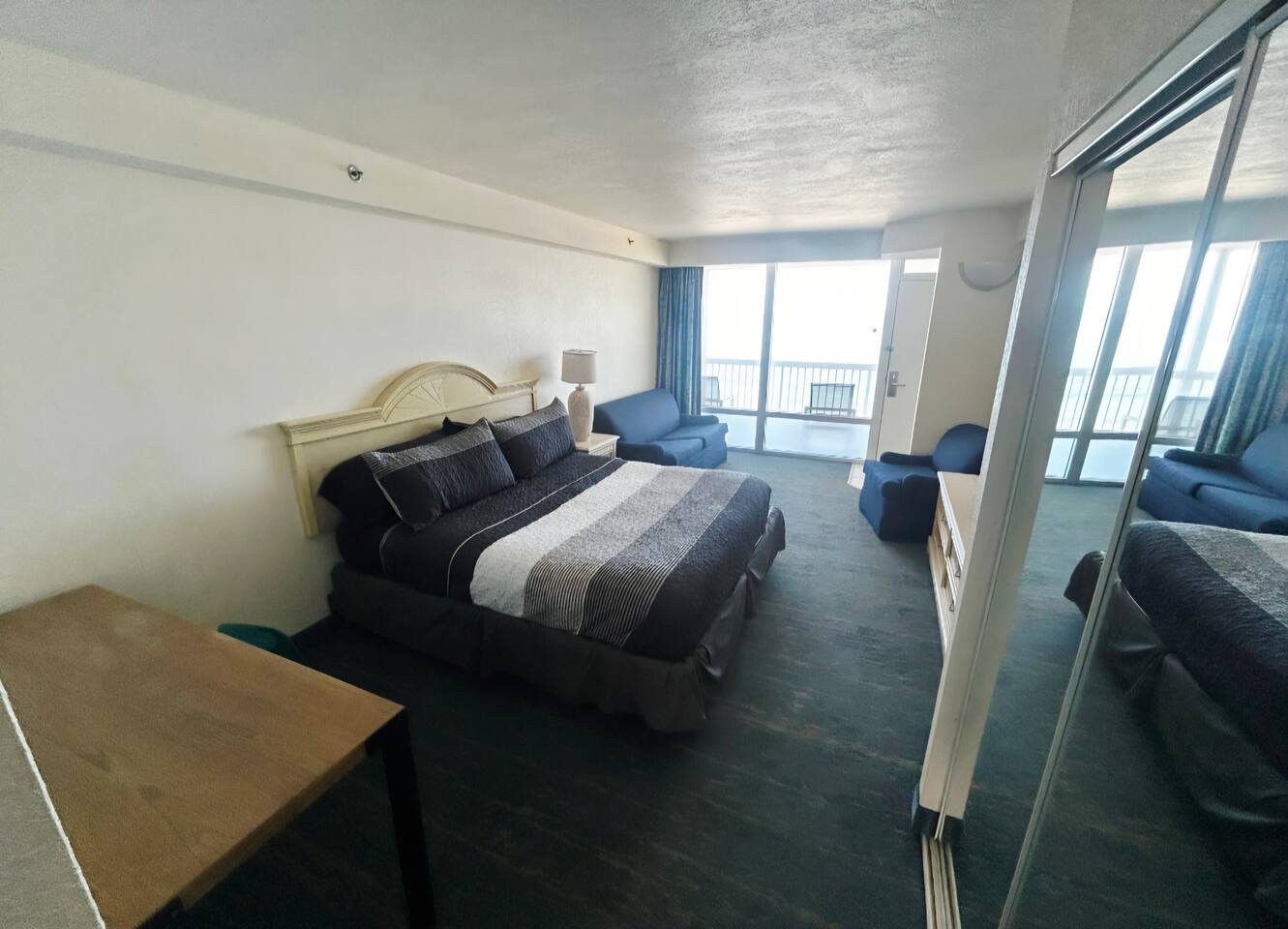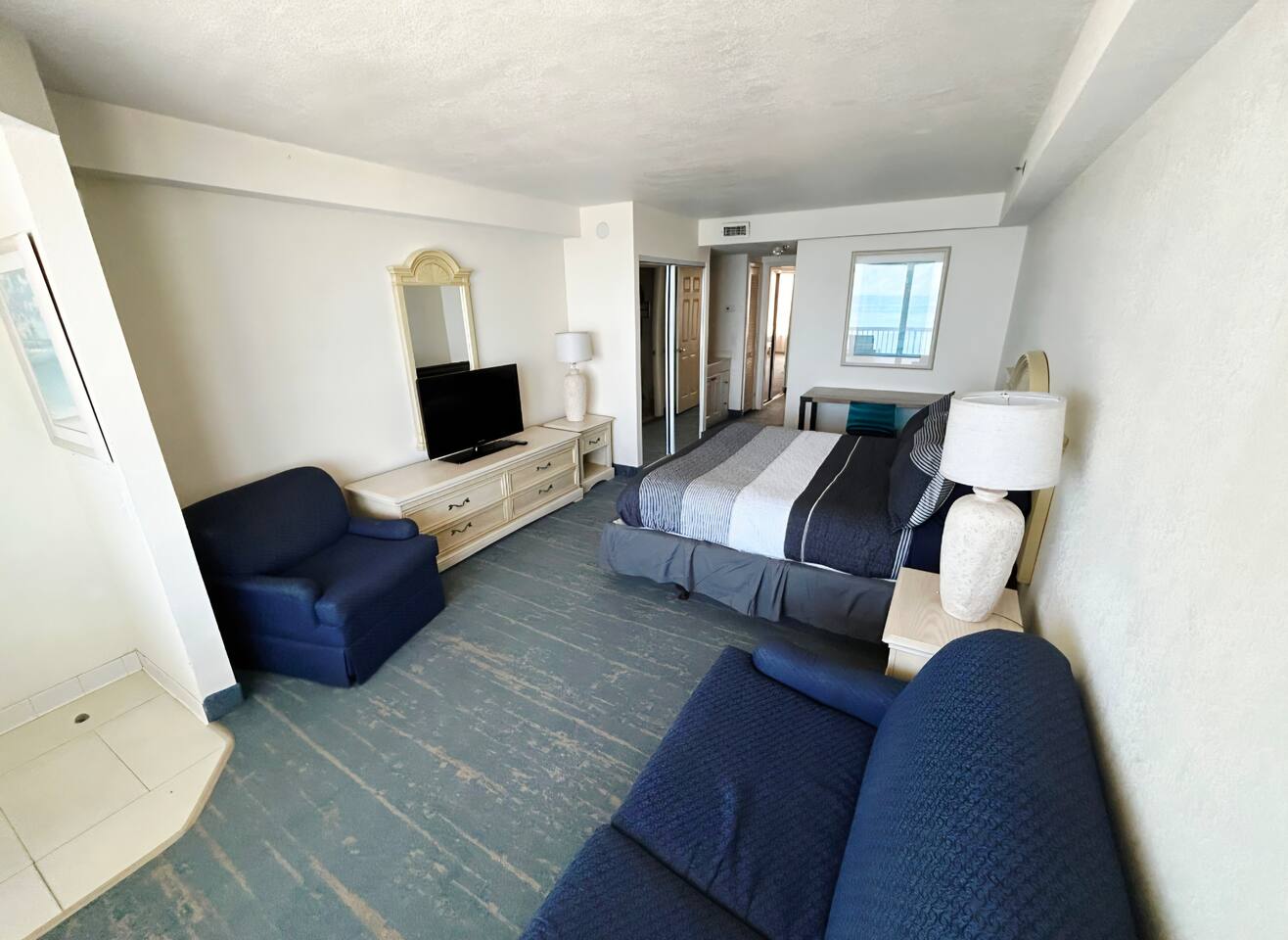 Perfect for a beach vacation, this unit offers comfort, convenience, and unbeatable views right on the shore! Wake up to stunning ocean views in this large 1-bedroom direct oceanfront condo! Featuring king bed & queen sleeper sofa in bedroom, queen sleeper in living room, a full kitchen, this comfortable getaway has space for the whole family or group. Enjoy your morning coffee on the private balcony overlooking the Atlantic, & take advantage of the heated indoor & outdoor pool, hot tubs & more