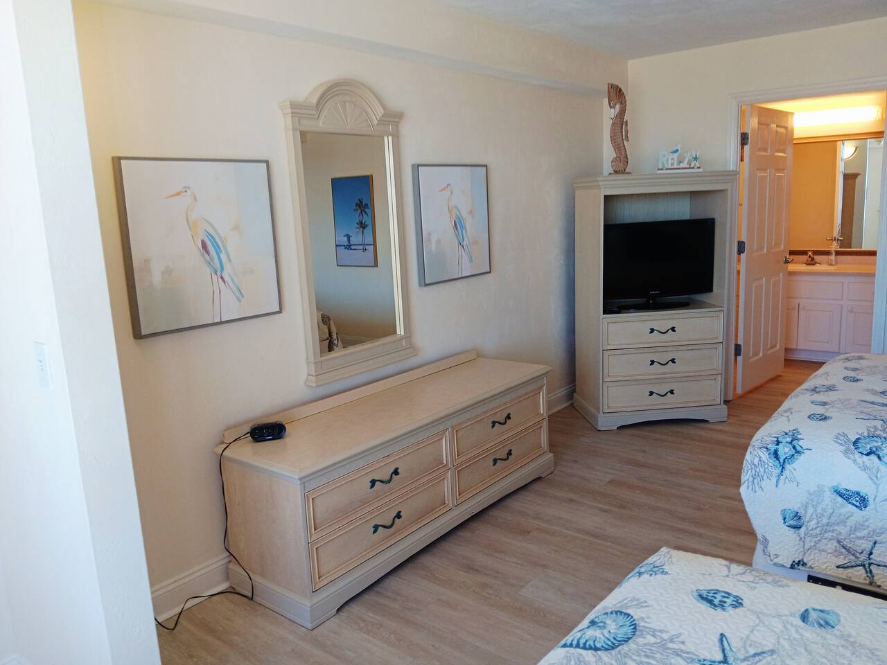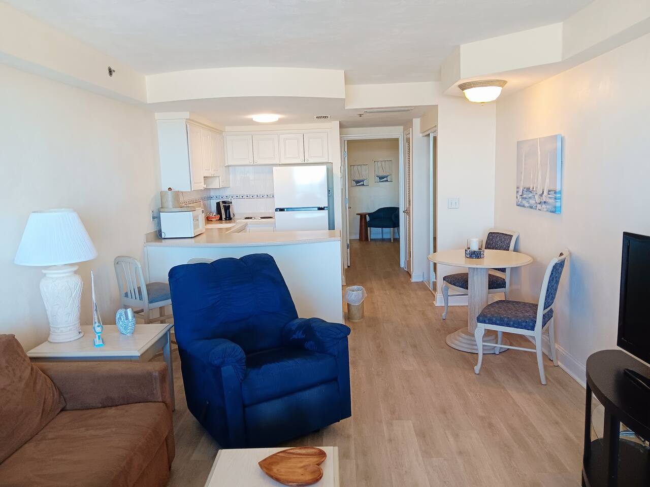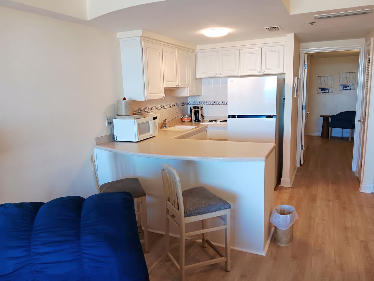 Our Resort is located across from a large shopping plaza with a grocery store, dining options, retail shops, a Walgreens and many other options. Our resort is directly on the beach with beach access. Our seawall has been damaged from prior hurricanes and we are currently working on fixing the pool deck. We do have a heated outdoor pool, heated indoor pool and hot tubs, fitness center, sauna and parking.