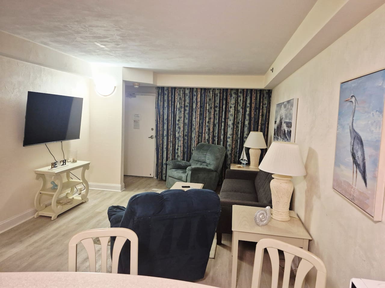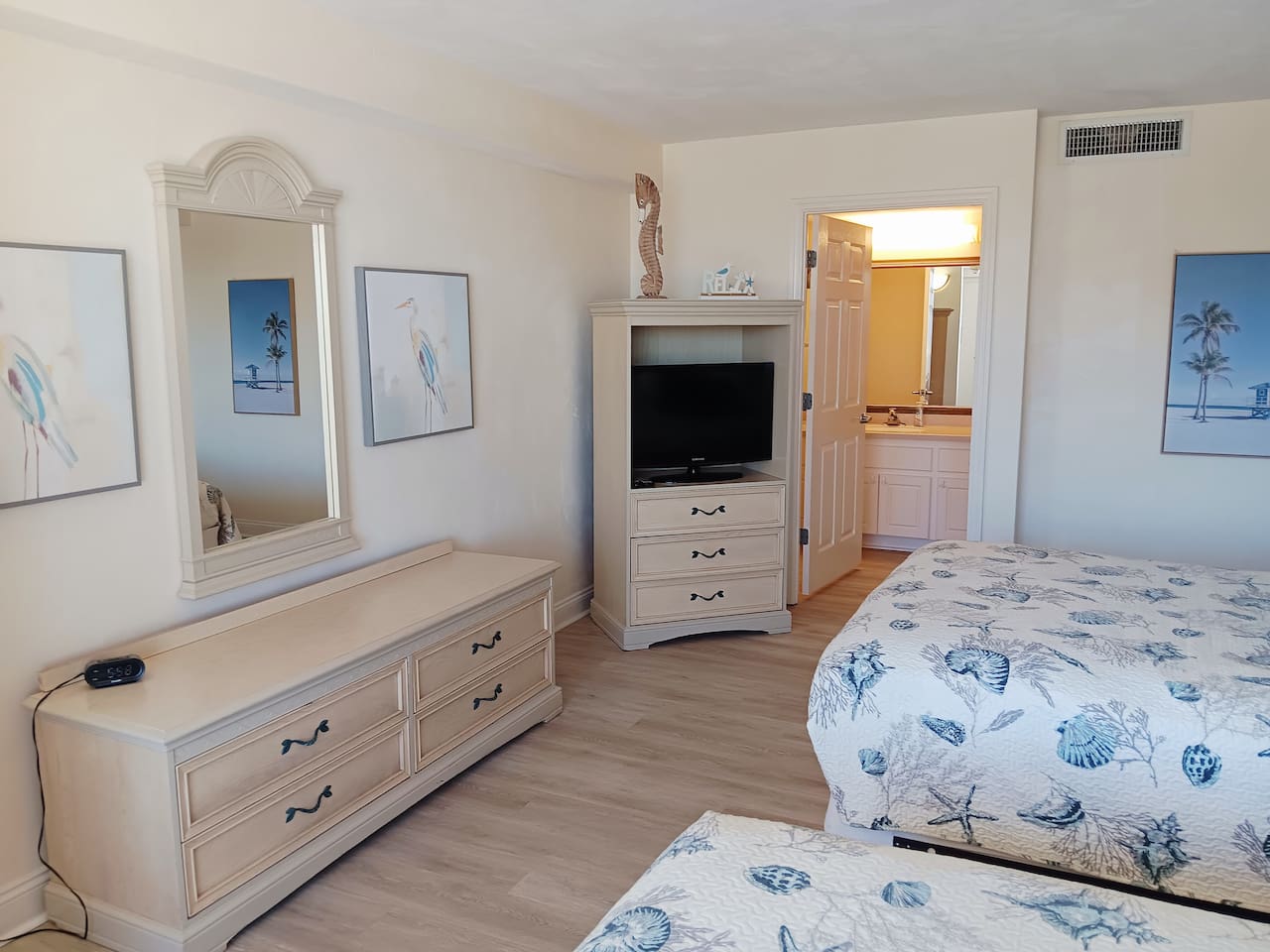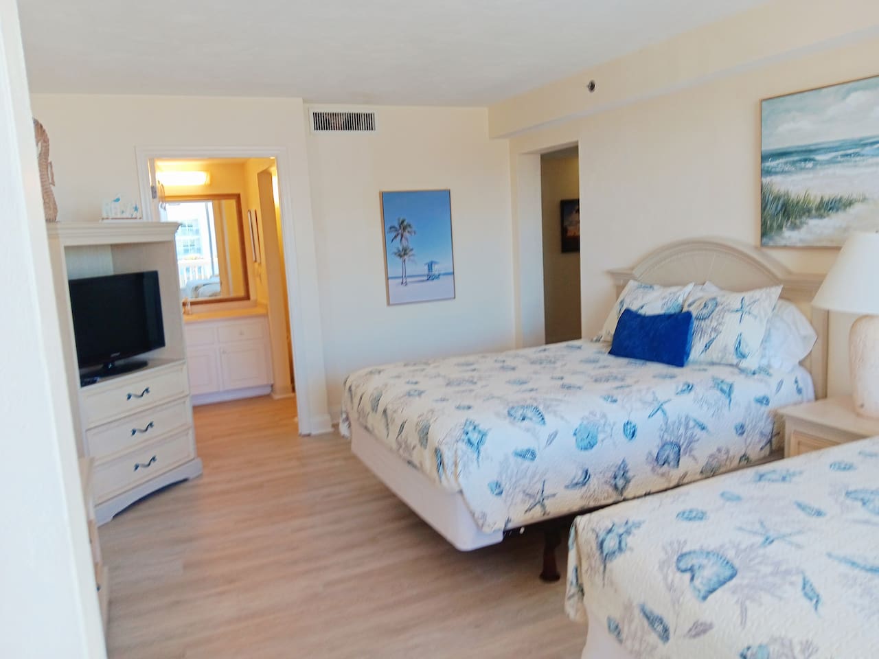 Our Resort is located across from a large shopping plaza with a grocery store, dining options, retail shops, a Walgreens and many other options. Our resort is directly on the beach with beach access. Our seawall has been damaged from prior hurricanes and we are currently working on fixing the pool deck. We do have a heated outdoor pool, heated indoor pool and hot tubs, fitness center, sauna and parking.