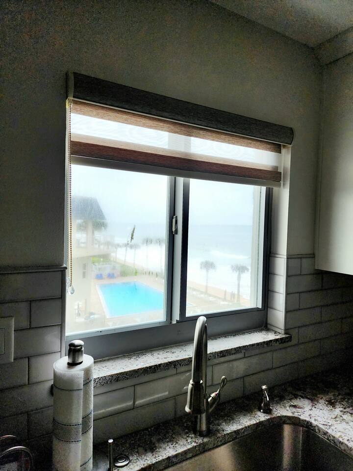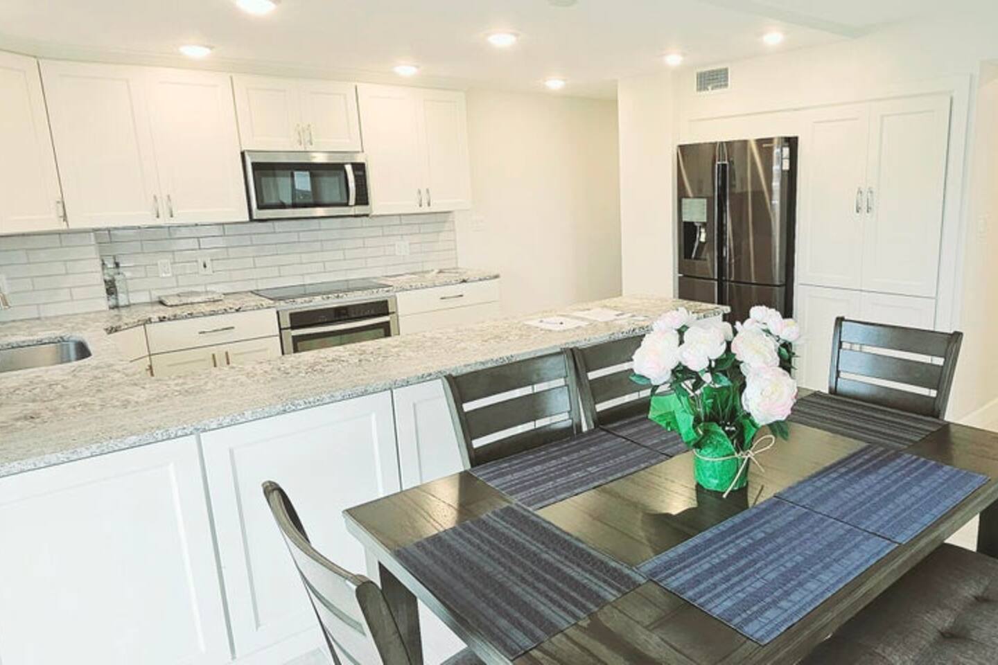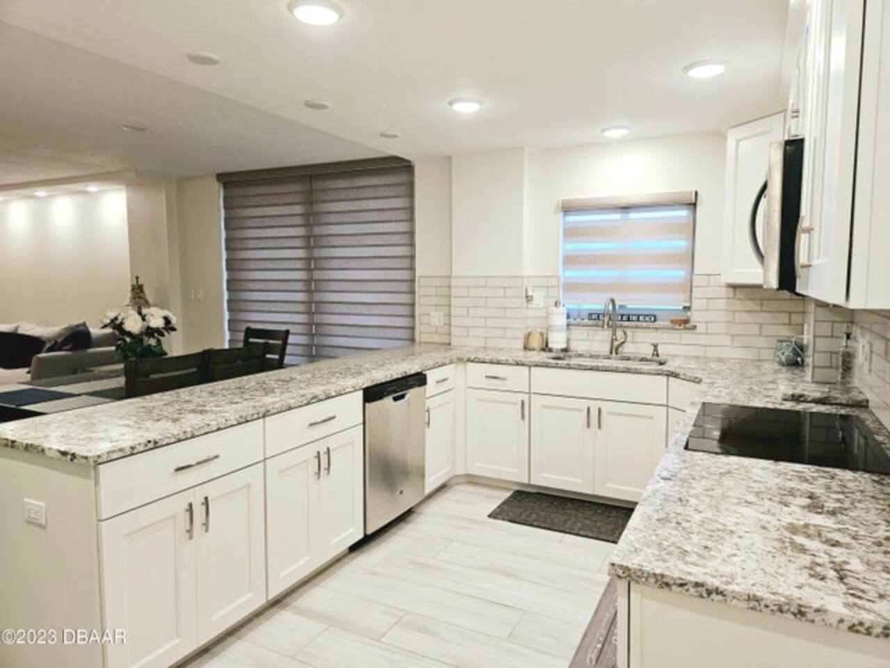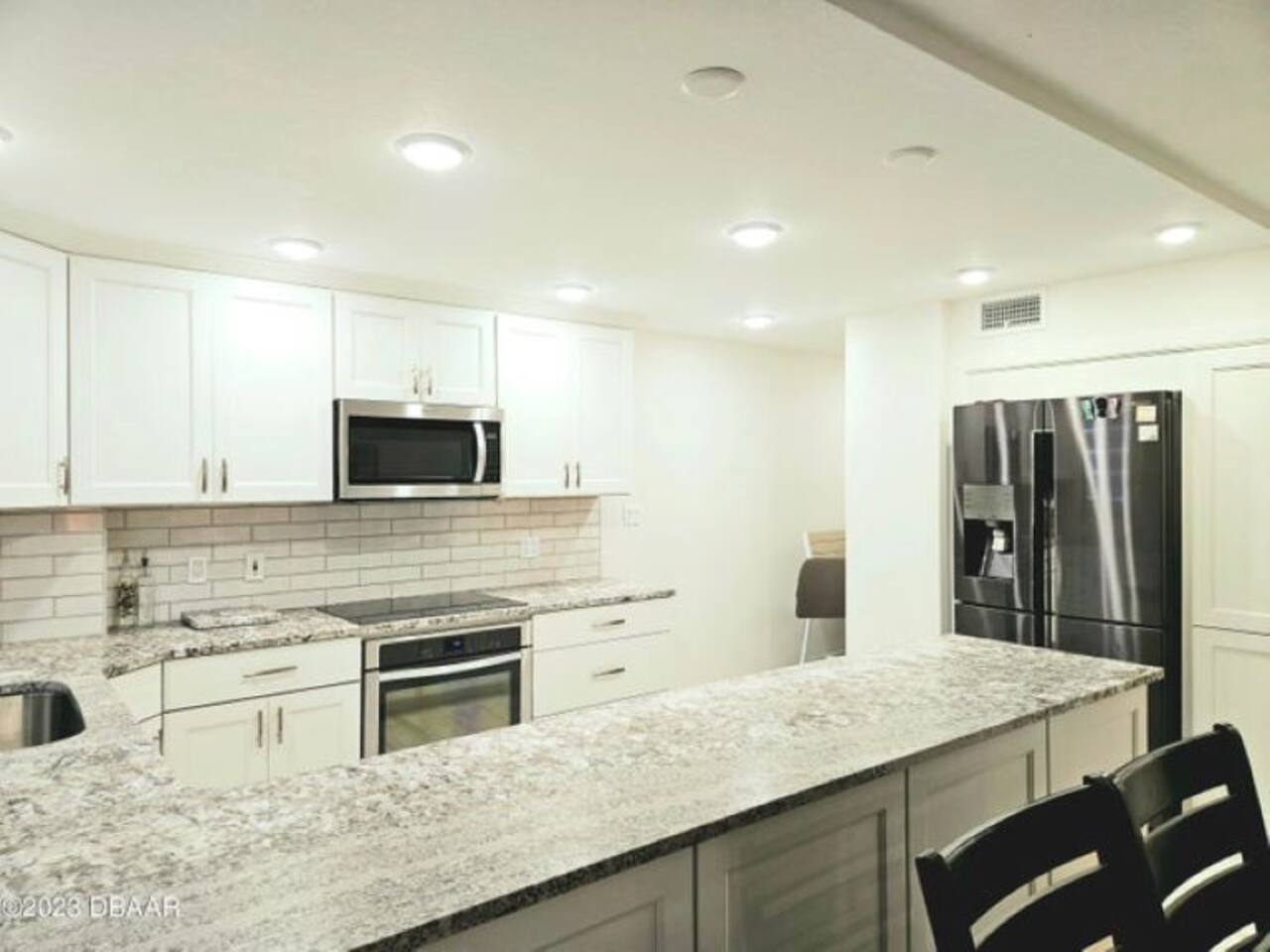 This gorgeous, upgraded condo boasts beautiful granite countertops, stainless appliances, fully stocked kitchen. Views of the Atlantic and also the sunset from the wrap around balcony. Watch the sun come up over the ocean and sip on your evening drink watching the sun set. King Master suite has ensuite bathroom with new tiled shower, large closets. Double queen guest bedroom with full bathroom and smart tv. Living room has private balcony, smart TV. Open floor plan from kitchen, dining room, living room.