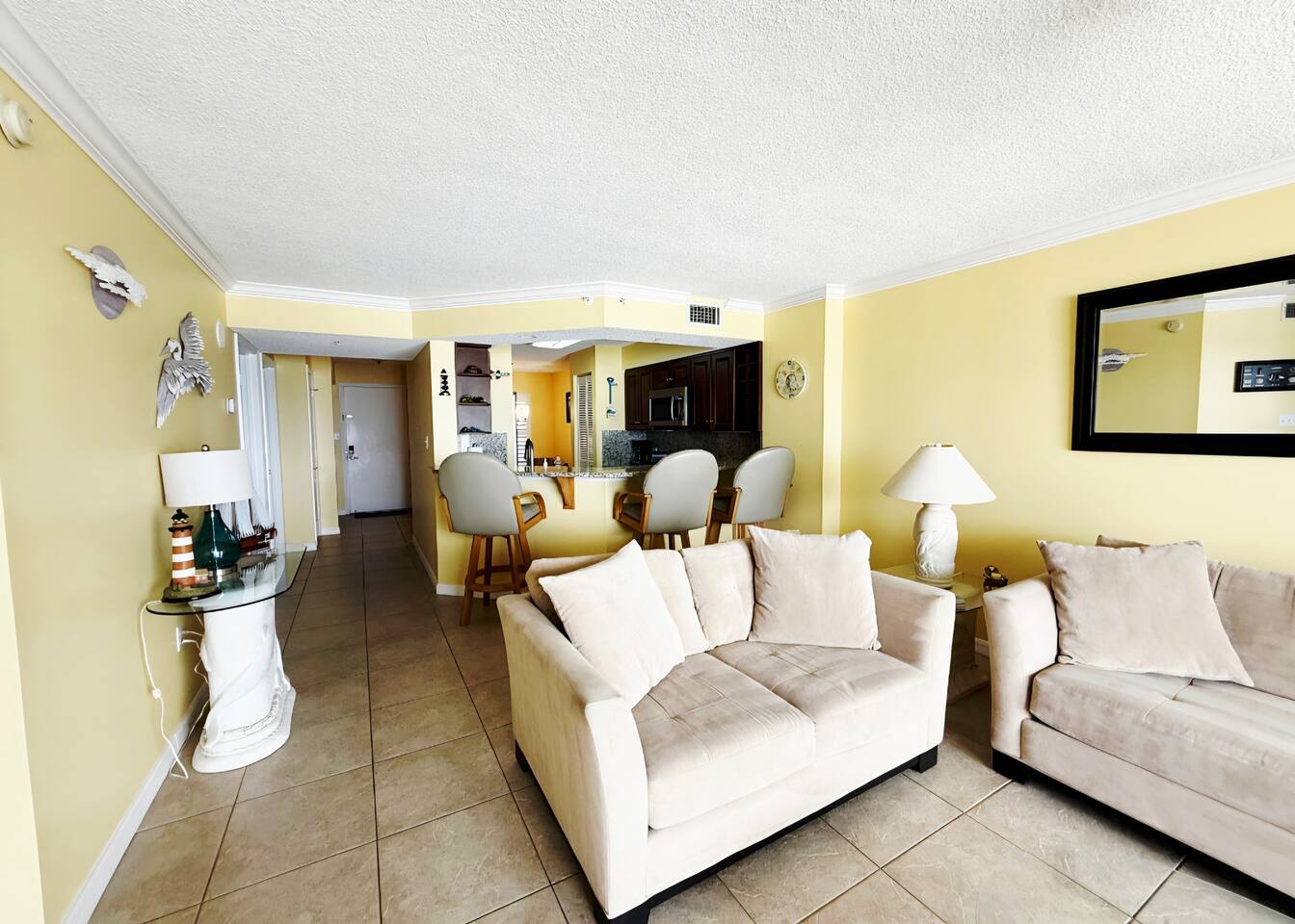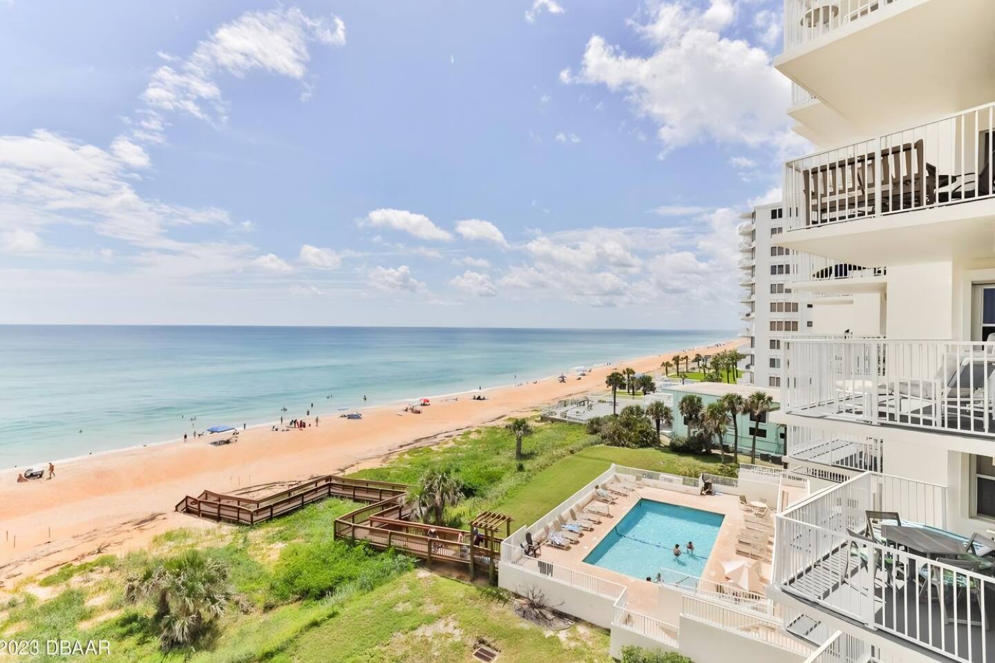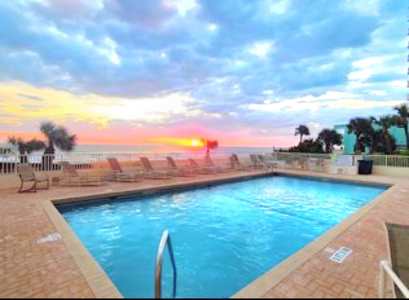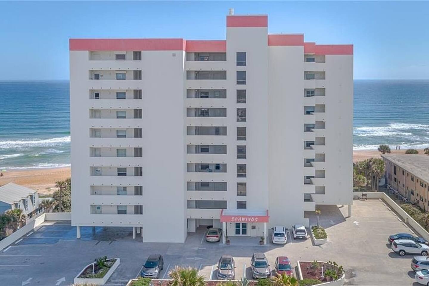 Seawinds Condominium offers oceanfront pool deck, club room w/a kitchen, private beach access to the "NO DRIVE" beach, one assigned parking space in the underground garage. There is availability for up to one additional vehicle in the unassigned lot but availability there is not guaranteed. The oceanfront pool is heated seasonally in the Winter. Condo is directly across the street from a large shopping plaza which includes a Publix, Beall's outlet, Dollar Tree, a Chinese restaurant, Sunrise Grill and Pizza, and a 7-11 and Dunkin Donuts. Within walking distance of the condo are restaurants like Sunny Side Up, Absolutely CheeZee, The Dog Hut, Hanky Panky's Lounge, Beach Side Brew Pub, Stavro's Pizza, Alfie's Take Out, Salty Farms Seafood Market, Beach-side Cafe and Donuts, a number of lounges, Subway, a post office and many more local restaurants. Ormond Beach is a quiet, quaint, beach town with mostly full time and seasonal residents. Only 15-20 minute drive to the hustle and bustle of the Daytona area. The unit is direct ocean facing with a private balcony with a dining table to enjoy outdoor dining.